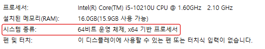 내 컴퓨터 우클릭 - 속성 클릭 - 시스템 종류 확인