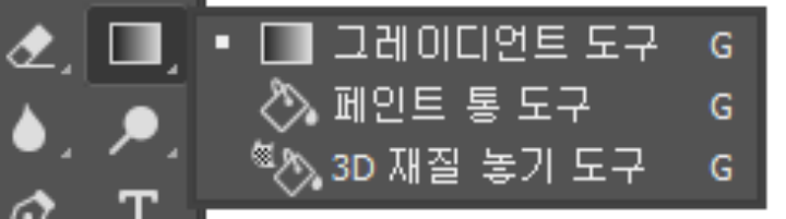 페인트 도구(Paint bucket tool) : 전경 색이나 패턴으로 특정 영역을 채울 수 있습니다.