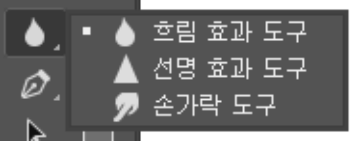 흐림 효과 도구(Blur tool) : 클릭하거나 드래그한 부분을 뿌옇게 만들 수 있습니다.