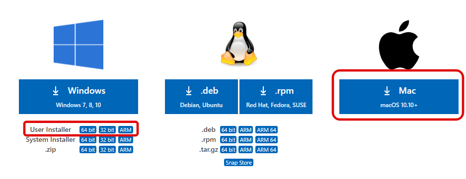 다운로드 홈페이지에 들어가면 아래와 같은 화면이 나오게 됩니다. 본인의 사양에 맞게 확인을 해야 합니다. 본인의 노트북이 맥북이라면 "MAC"을 클릭해야 합니다. 윈도인 경우에는 내 컴퓨터 내에서 몇 비트인지 확인을 하고 설치해야 합니다. 최근, 사용하는 노트북 또는 컴퓨터는 64비트로 고정되어 있습니다. 본인의 컴퓨터 또는 노트북이 오래된 컴퓨터라면 사전 확인이 필요합니다.